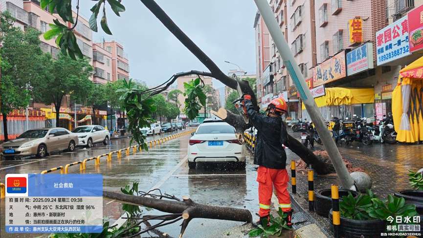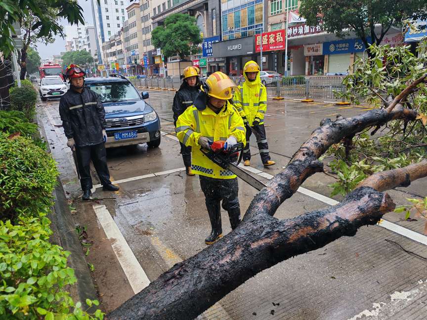 受超强台风“桦加沙”影响,广东惠州大亚湾开发区个别区域出现大树被风吹倒、屋顶被风吹开的情况,大亚湾消防救援大队迅速出警沪深投,化解险情。